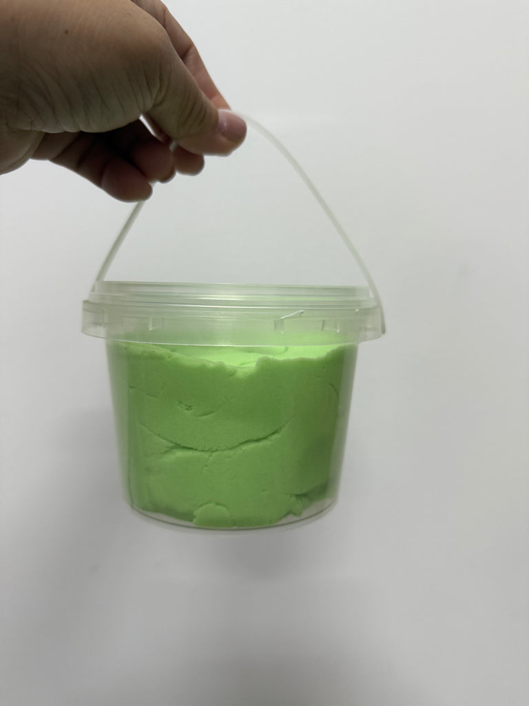 650g of smooth sand dough for sensory play! In bright green. You can use your playdough cutters for these :)